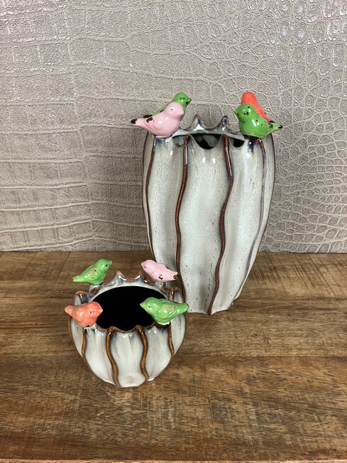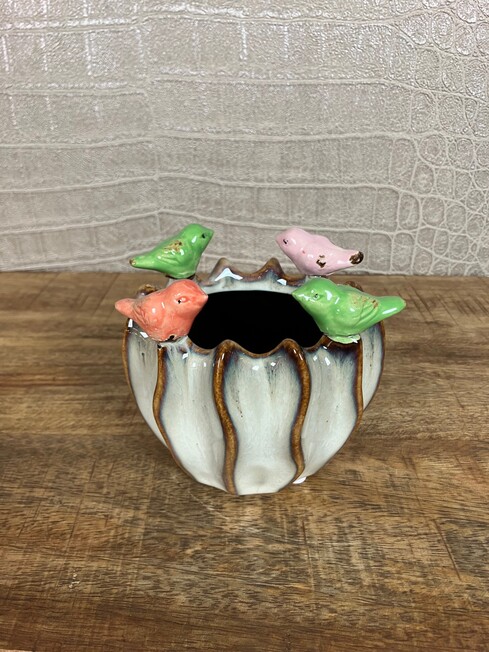 ZDS-820925 Bloempot Vogels S Bruin