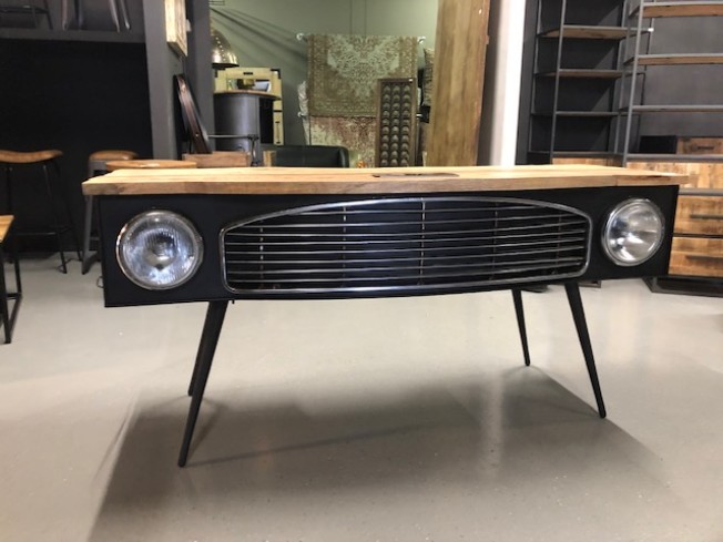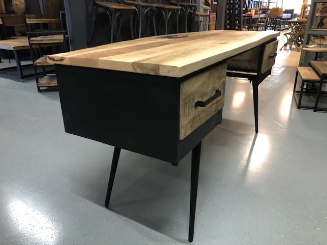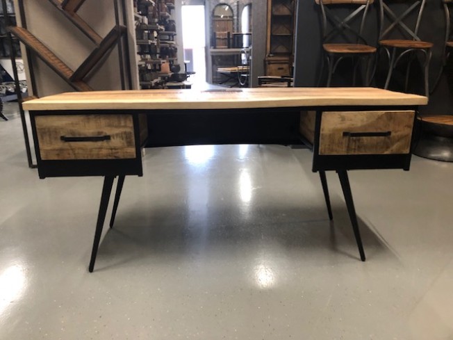 Industrieël bureau met 2 laden en lichtgevende kop-lampen