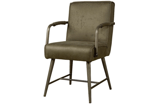 De Bordeaux uit de collectie van Het Woonhuis is een prachtige stevige armstoel. De bekleding is van kunstleder en het frame is van metaal. Verkrijgbaar in de kleuren grijs, groen en cognac.