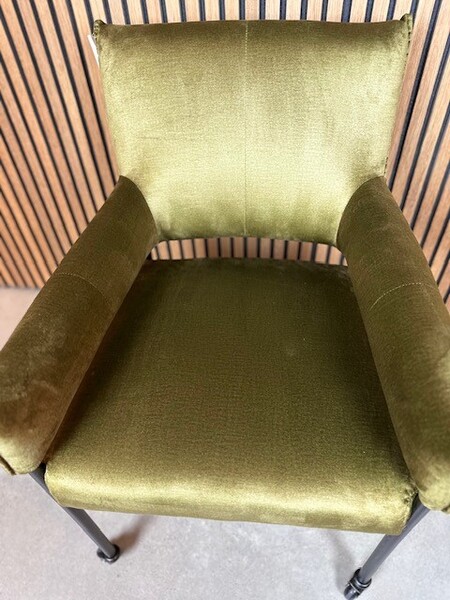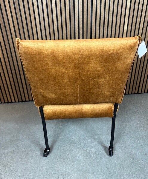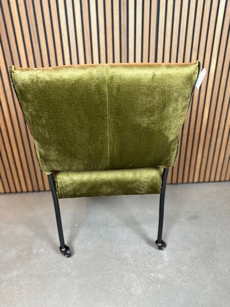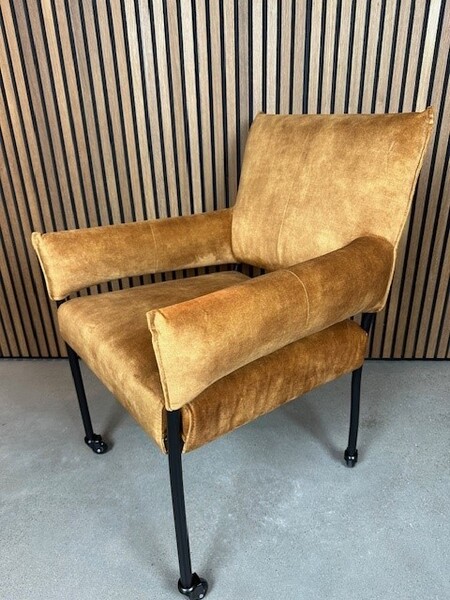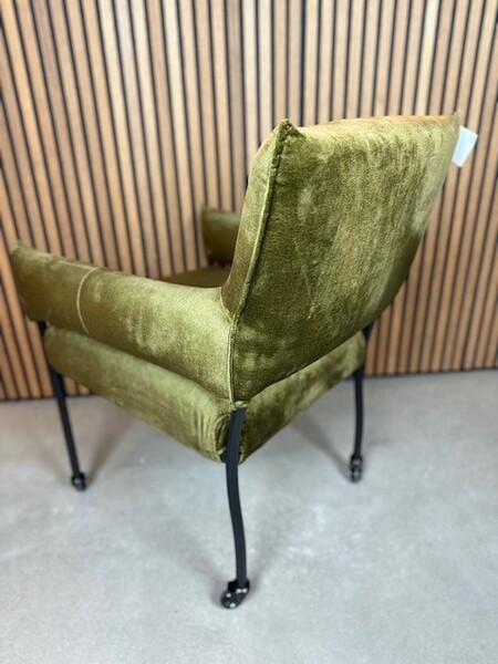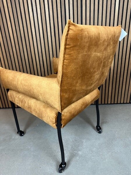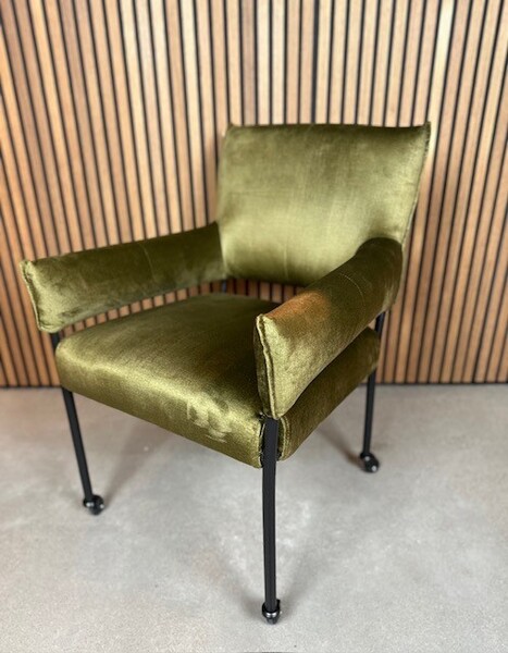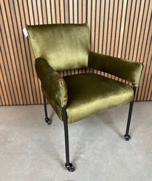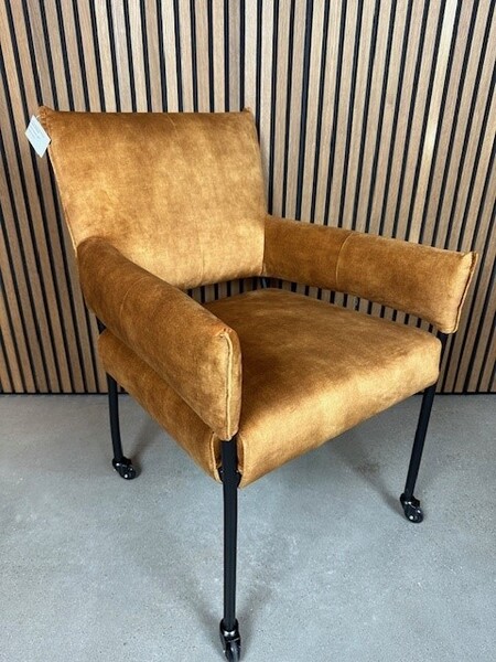 Deze prachtige eetkamerstoel op wieltjes is in elke gewenste kleur leverbaar.