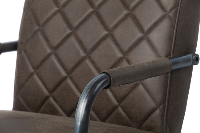 Industriële Mick armstoel in eco leder, dit is een combinatie van 30% stof en 70% echt leder.