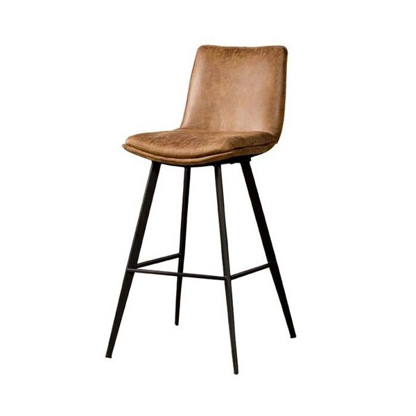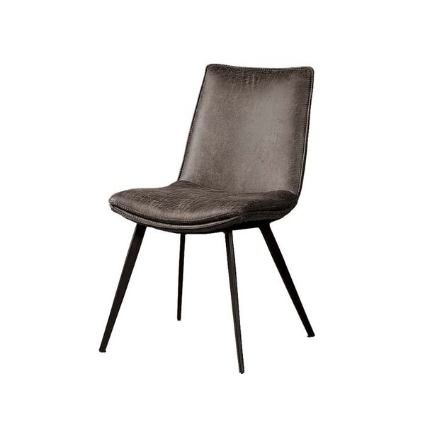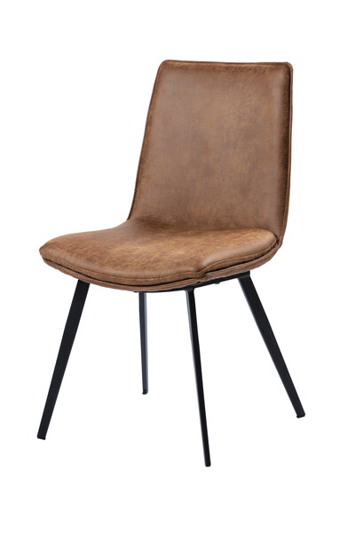 De bekleding van deze stoel ziet er uit als echt leder, is onderhoudsvriendelijk en slijtvast in gebruik. De stoel heeft een blokstiksel en stoere stalen poten.