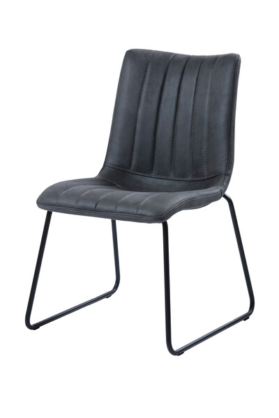 De stoel heeft een microfiber bekleding met grijs metalen onderstel.