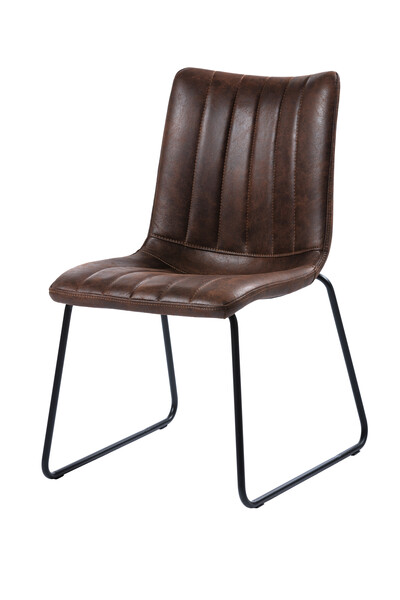 De stoel heeft een microfiber bekleding met grijs metalen onderstel.