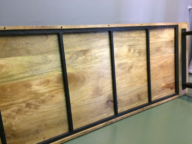 De eettafel is voorzien van een mango blad, gecombineerd met zwart metalen U poten.