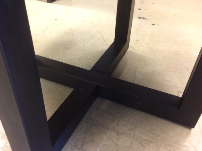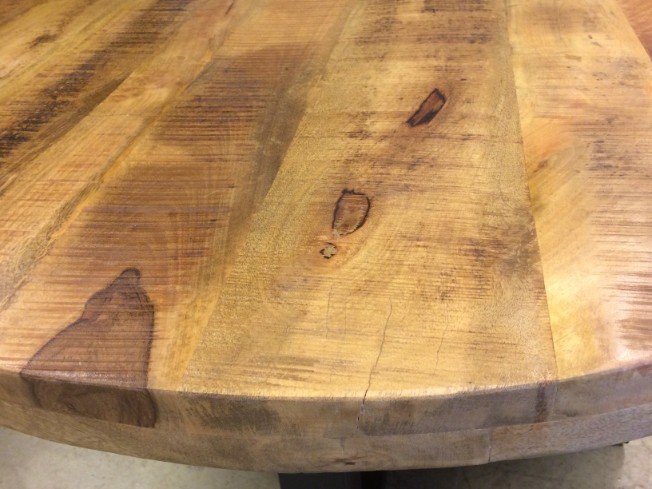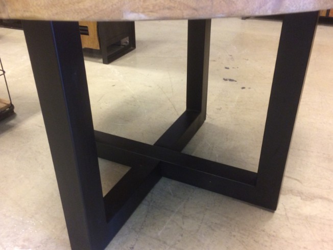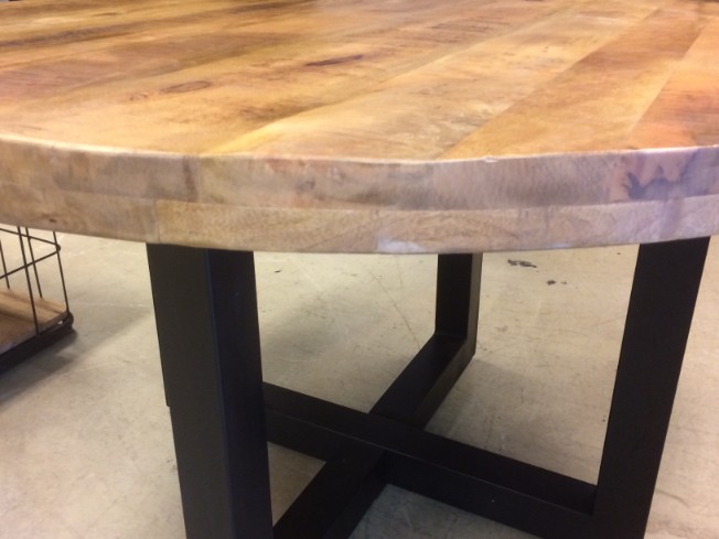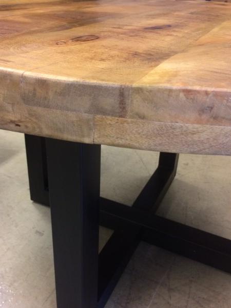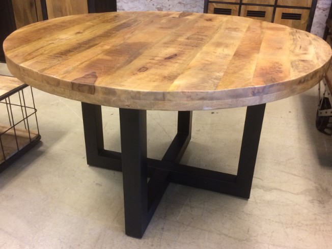 De tafel is voorzien van een mango houten blad gecombineerd met een zwart kruispoot.