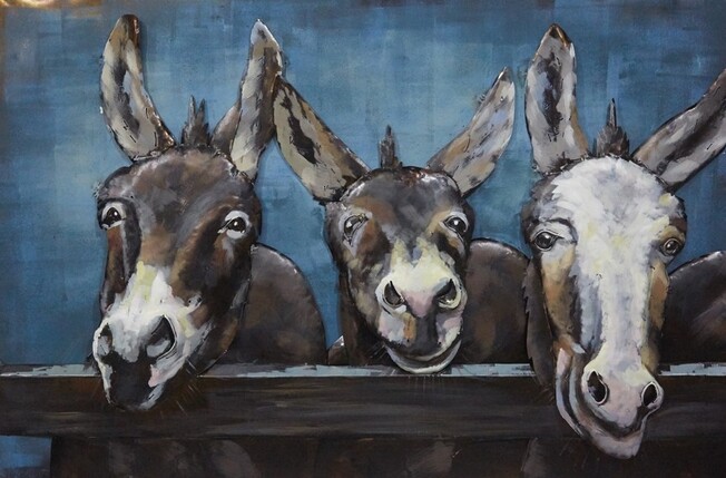 Dan mag dit prachtige schilderij zeker niet ontbreken! Het 3D Metaal Schilderij - Ezels is gemaakt van metaal en het toont drie super schattige ezels.